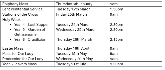 The school gathers on a Monday morning for our Prayers and then we go to our RE lessons to reflect on our learning from the gospels. We block our teaching of other faiths so we can deepen our understanding of other religions and cultures. You can find out more about our RE curriculum by using the link below.